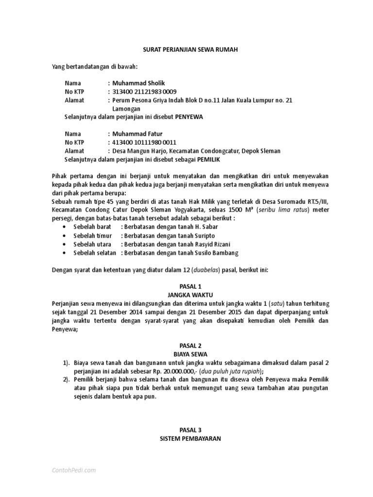 Surat Perjanjian Sewa Rumah : PERJANJIAN PENYEWAAN RUMAH UNTUK KEDIAMAN / Check spelling or type a new query.. Check spelling or type a new query. We did not find results for: Maybe you would like to learn more about one of these?
